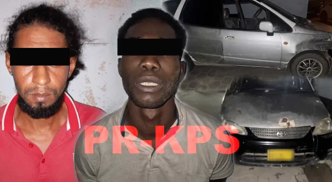 De verdachten M.C. (27) en N.J. (35) zijn dinsdag 9 september door leden van het Regio Bijstandsteam Paramaribo (RBTP) aangehouden ter zake diefstal met geweldpleging op een adres te Land van Dijk.
