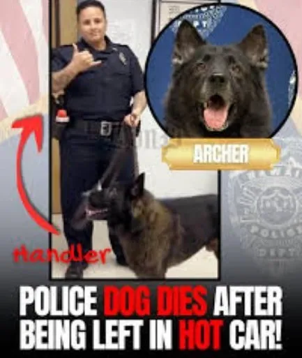 De zesjarige K-9, genaamd Archer, afkomstig uit Hongarije, was getraind in het opsporen van drugs en nam deel aan talrijke operaties. Archer stierf op 4 september na een “onaanvaardbare periode” alleen in het voertuig.