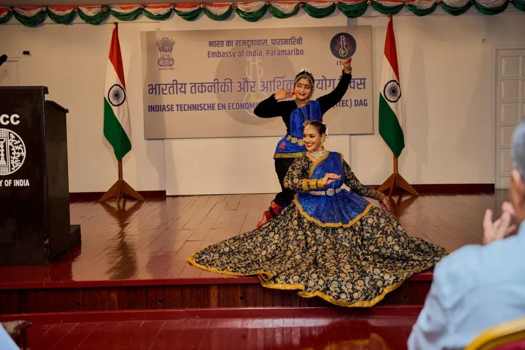 Het programma werd verrijkt met levendige culturele optredens van dansdocente Ambili Chidangil, begeleid door Shanita Bhagwandin, die de traditionele Indiase dansvorm Bharatanatyam demonstreerden.