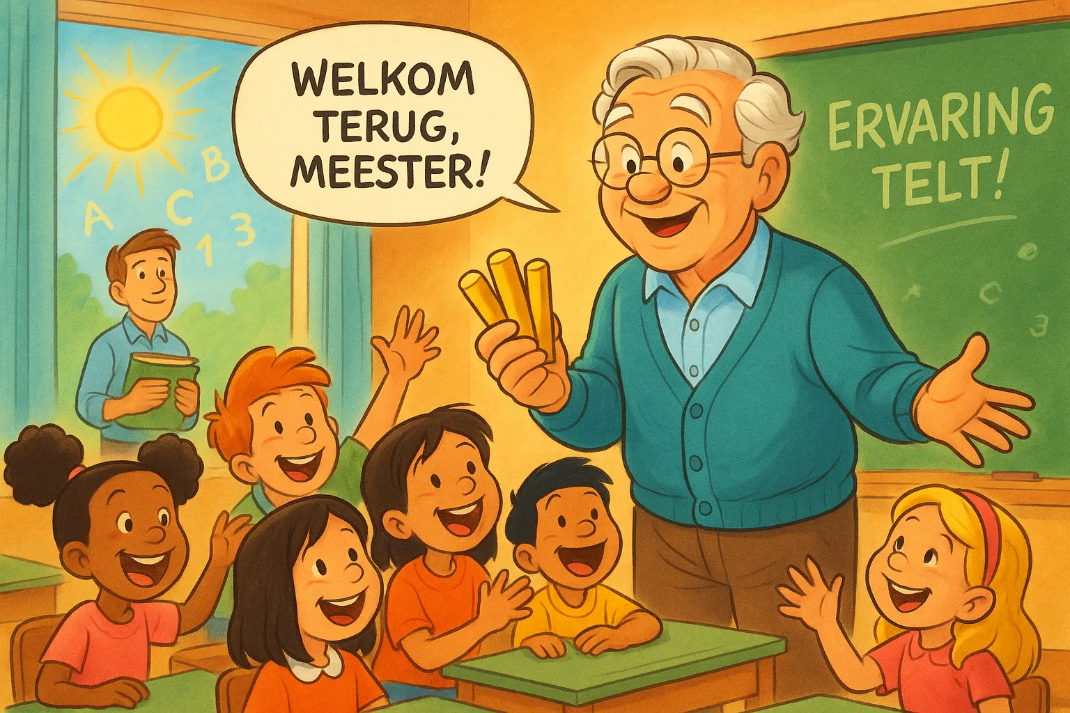 “Meester, komt u echt weer lesgeven?” – die vraag zou zomaar kunnen klinken als een gepensioneerde leerkracht terugkeert in de school waar hij ooit tientallen kinderen leerde lezen en rekenen.