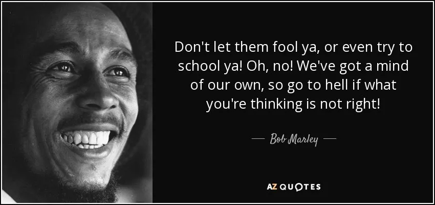 Bob Marley bezong het lang geleden al: “Don’t let them fool you, or even try to school you. Oh no, we’ve got a mind of our own”.