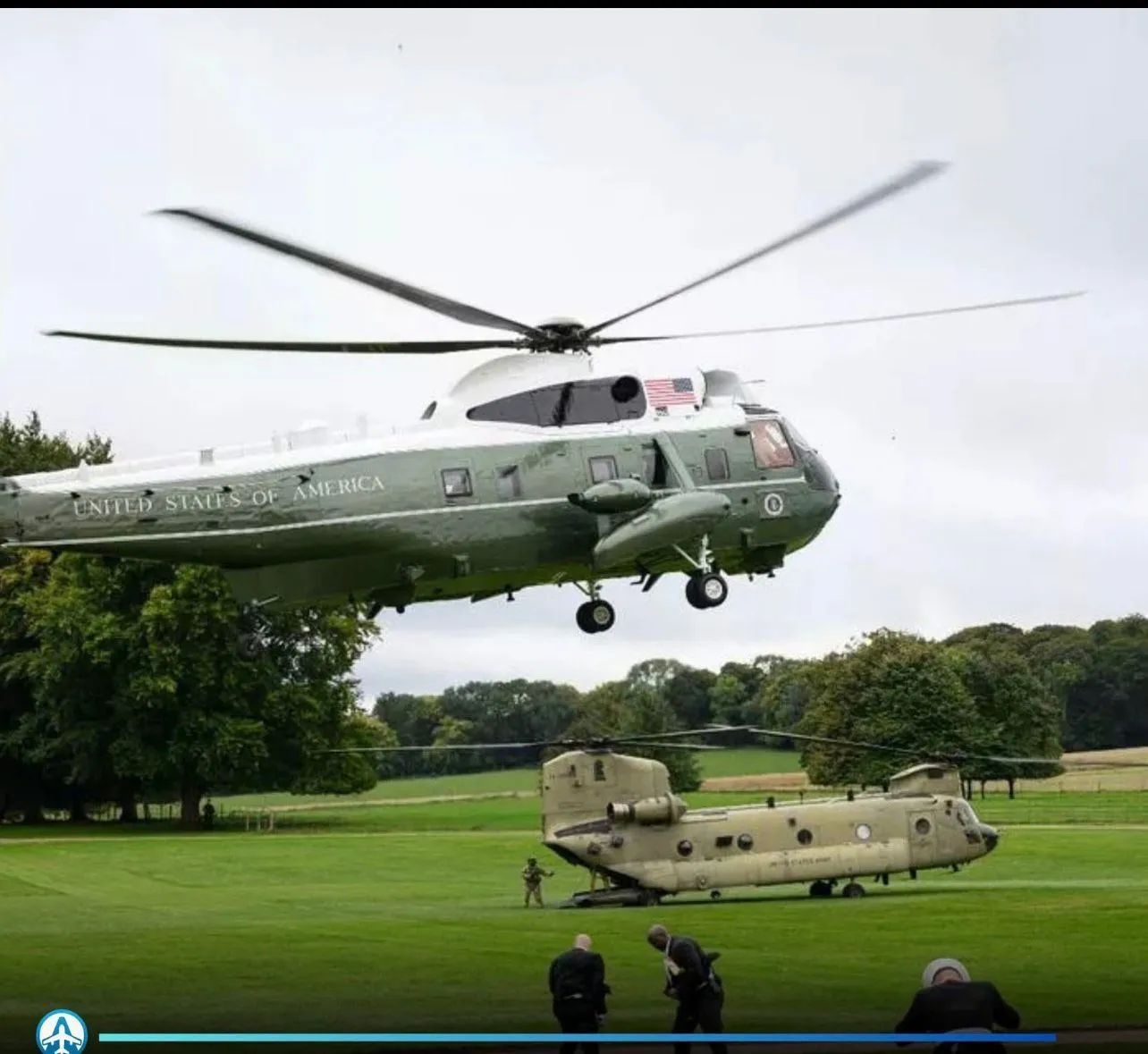 Marine One, het presidentiƫle helikoptertransport van Donald Trump en First Lady Melania, maakte vandaag, donderdag 18 september. een ongeplande landing op een lokaal vliegveld in het Verenigd Koninkrijk.