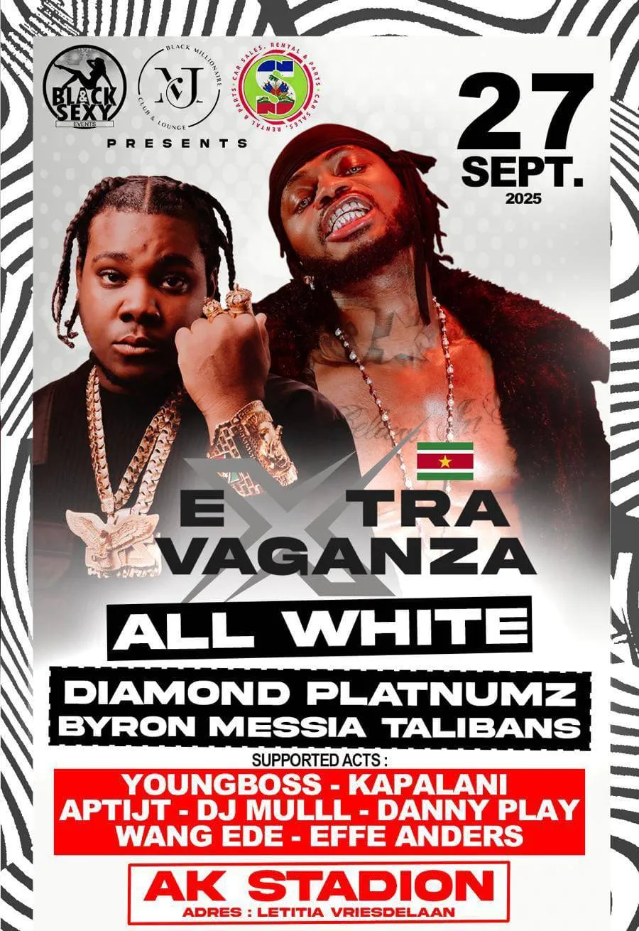 Kaarten zijn nog verkrijgbaar in de voorverkoop voor SRD 800. De show start om 20:00 uur en belooft een avond vol hits en dansgarantie te worden. Fans kunnen een onvergetelijke ervaring verwachten met deze mix van internationale en lokale talenten.