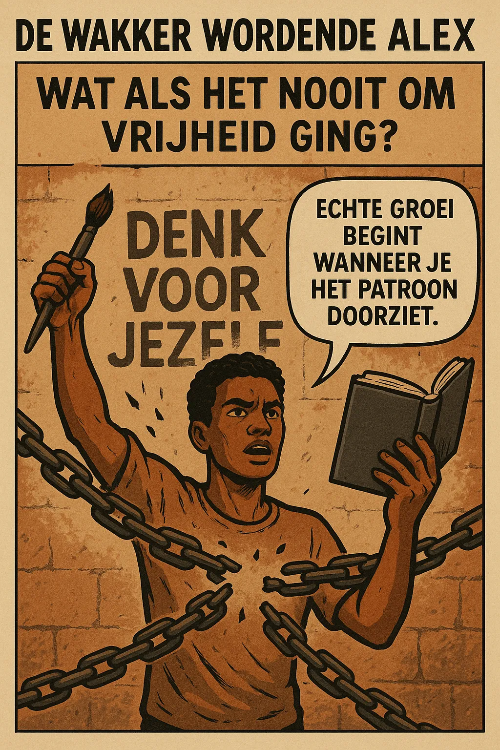 Alex glimlacht. “Blijf vragen stellen. Blijf groeien. Want echte vrijheid begint met bewustzijn.”