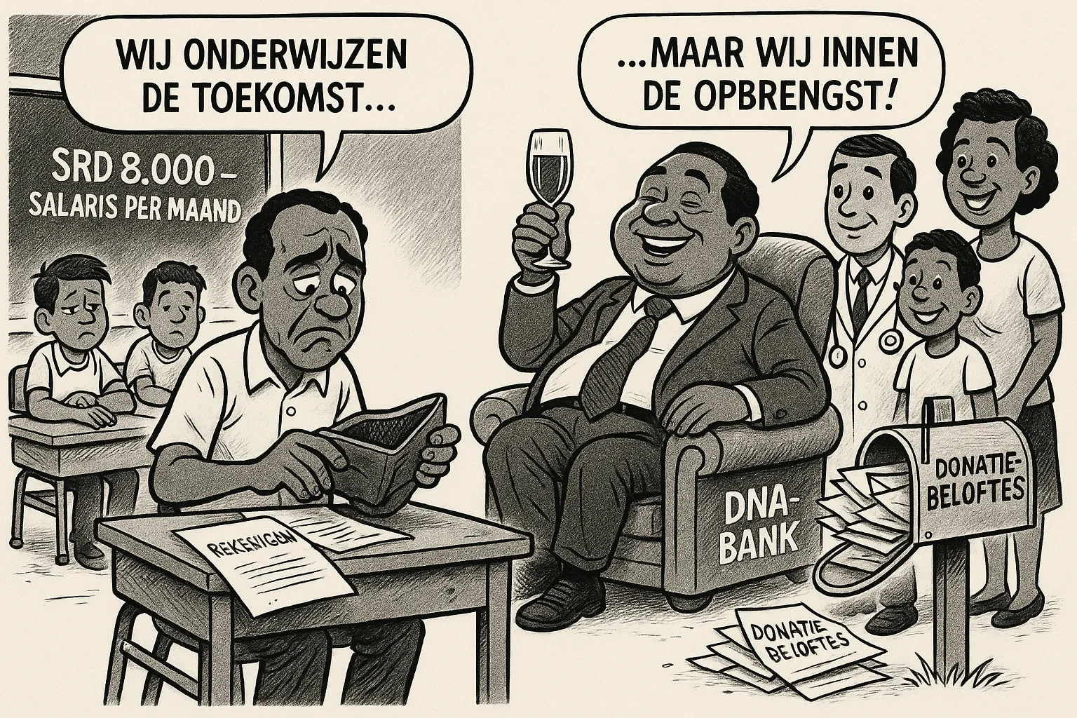 Het nieuwe schooljaar is begonnen, maar niet met feestelijke gezichten. Veel Surinaamse leerkrachten voelen zich miskend en onderbetaald. Hun boosheid richt zich vooral op de schrijnende ongelijkheid met Assembleeleden, die maandelijks bruto SRD 130.000 ontvangen en tijdens hun zittingsperiode recht hebben op volledige medische zorg voor zichzelf en hun gezin. Voor docenten, die de basis leggen voor de toekomst van het land, voelt dit als een harde klap.