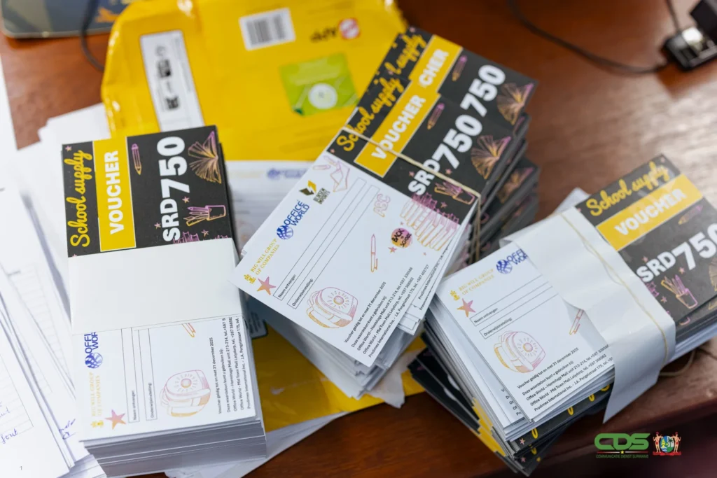 Op 1 oktober ontvingen zij hun uitbetaling van SRD 3.500 en extra waardebonnen van SRD 750 voor school- en schoonmaakspullen.