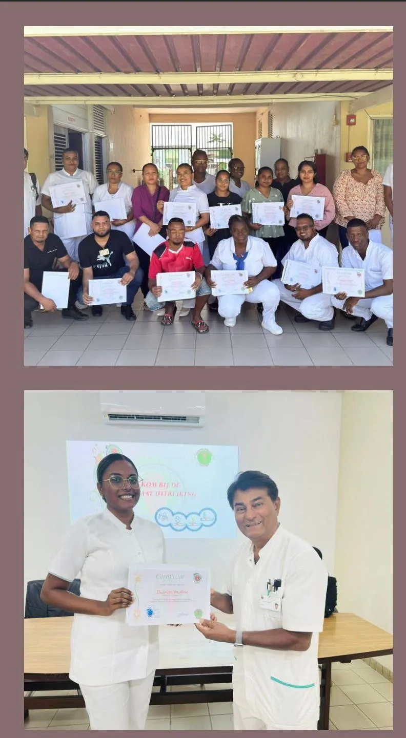 Dankzij deze donatie kon het zorgteam een realistische en waardevolle reanimatietraining volgen, verzorgd door broeder Shami Mahabier. De training werd succesvol afgerond met een officiële certificaatuitreiking.