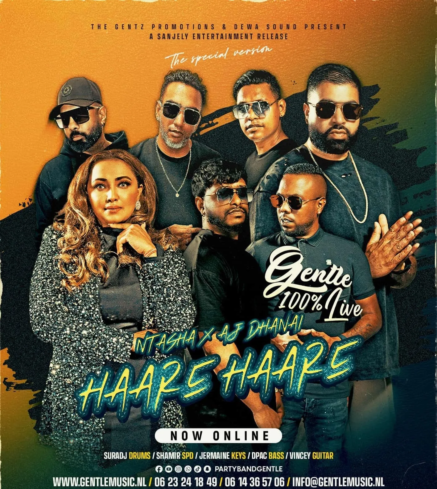De Nederlandse partyband GENTLE heeft zijn nieuwe 100% live track “HAARE HAARE” uitgebracht, met zangeres Ntasha en zanger Aj Dhanai.