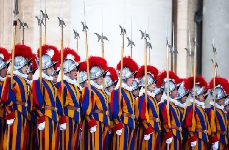 Binnen het Vaticaan blijven de gardisten hun traditionele rood-geel-blauwe renaissance-uniform dragen. Zaterdag leggen ruim twee dozijn nieuwe rekruten de eed af.