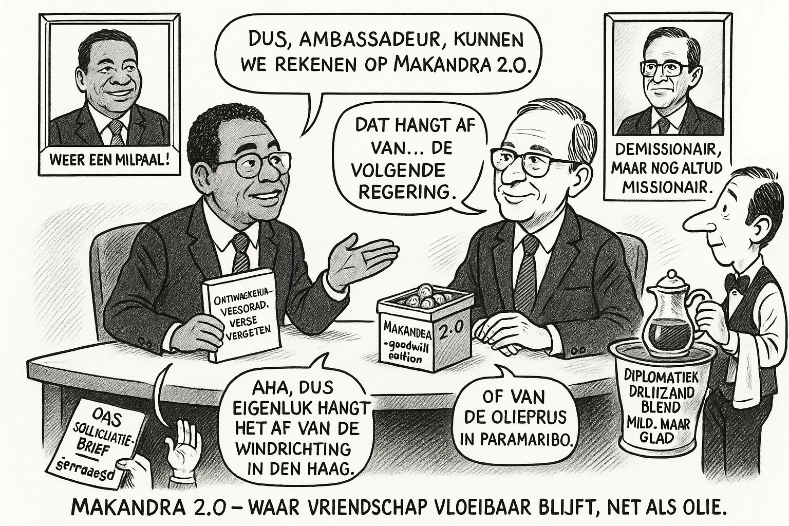 Volgens een ervaren diplomaat, die anoniem wil blijven, is de uitlating van Oostelbos “een schoolvoorbeeld van diplomatie in drijfzand”. Nederland bevindt zich momenteel onder een demissionair kabinet, waardoor alle toezeggingen voorlopig vrijblijvend blijven. “De Surinaamse regering mag dit niet als doorbraak zien,” waarschuwt hij. “Een volgende Nederlandse regering kan het beleid volledig hertekenen. Wat nu wordt gepresenteerd als goodwill, is vooral een tactische glimlach in afwachting van nieuwe politieke verhoudingen.”