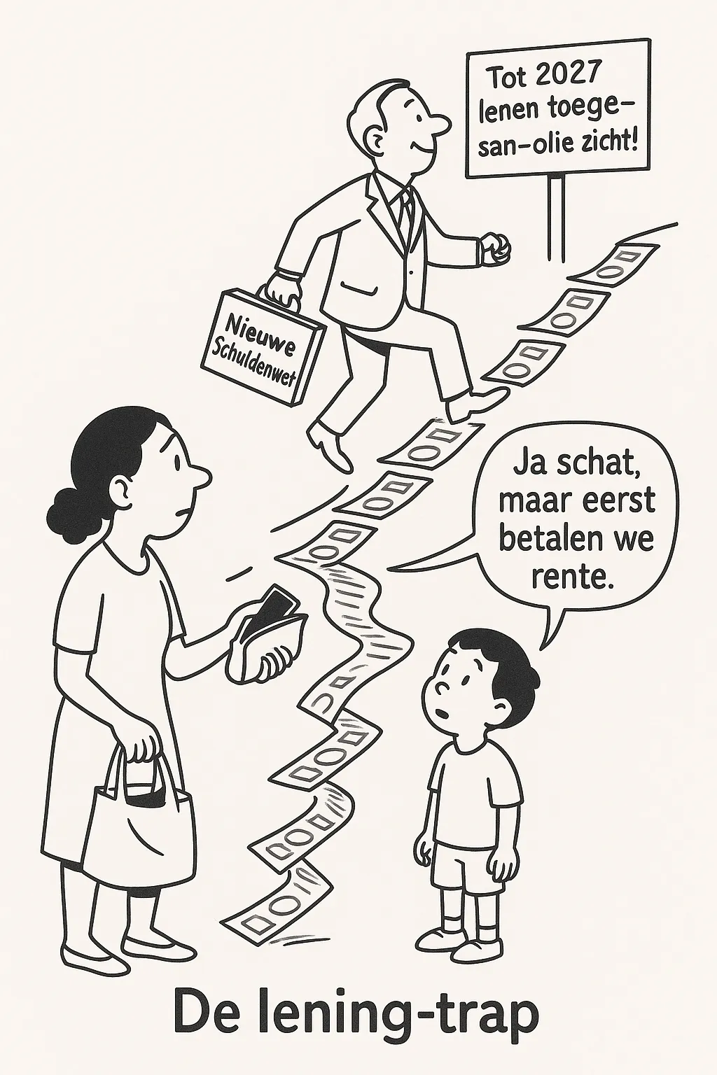 De regering mag nu tijdelijk meer geld lenen om de gaten in de begroting te vullen. Dat lijkt goed nieuws, want zo kunnen salarissen en subsidies worden betaald. Maar financieel gezien is het net als wanneer een gezin meer leent dan het eigenlijk verdient.