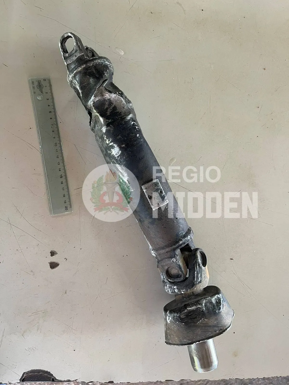 Hij verklaarde dat hij samen met zijn vriendin, de bestuurster W.S. van een auto, over de weg reed toen vrij onverwachts een onderdeel (drijfas) vermoedelijk van een pick-up tegen de voorruit van hun auto terechtkwam.