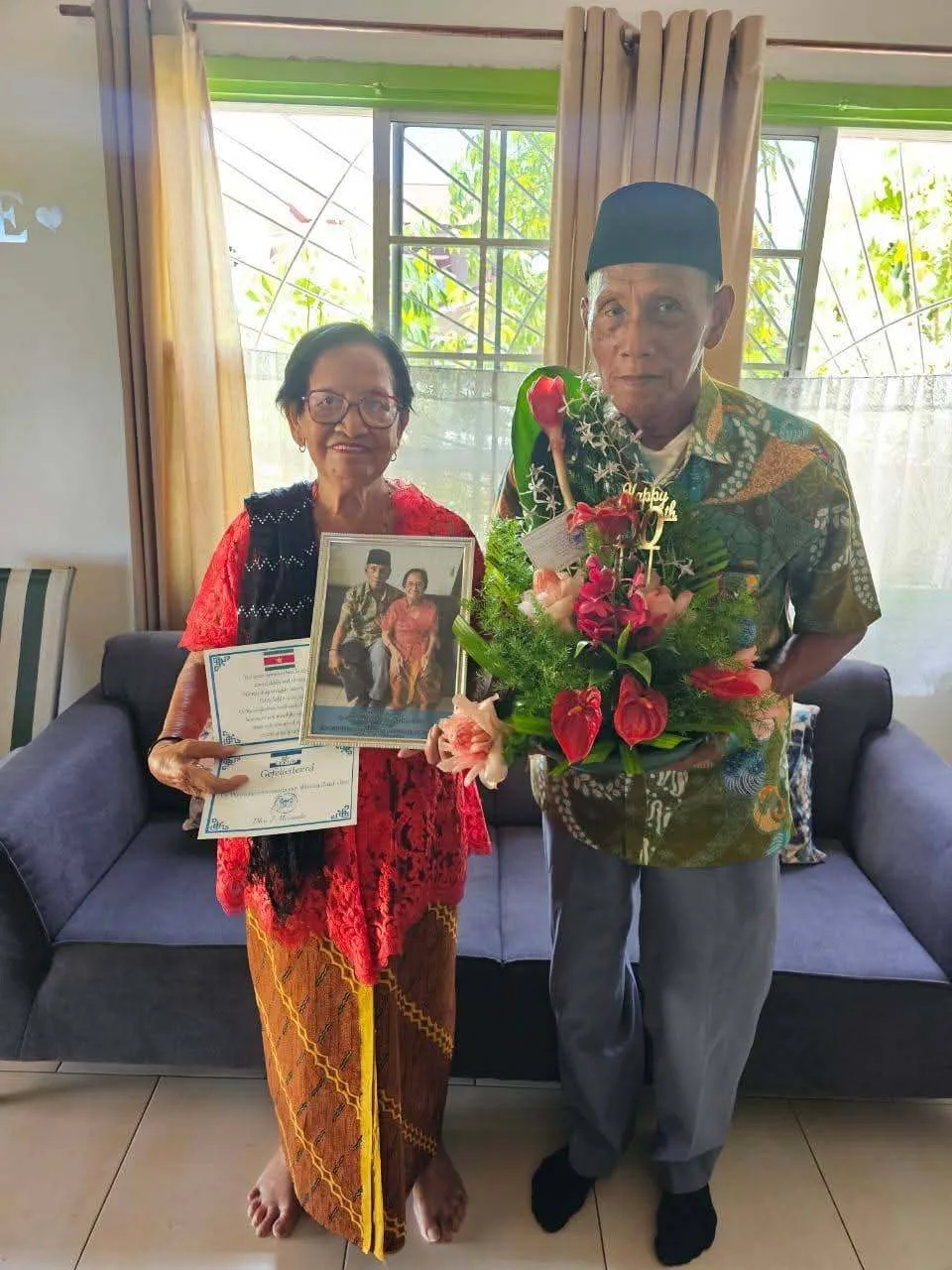 Het echtpaar Kertodikromo-Sariman heeft op 14 oktober hun 60-jarig huwelijksjubileum gevierd. Ze leerden elkaar kennen dankzij een oom van mevrouw Sariman en trouwden op 14 oktober 1965.