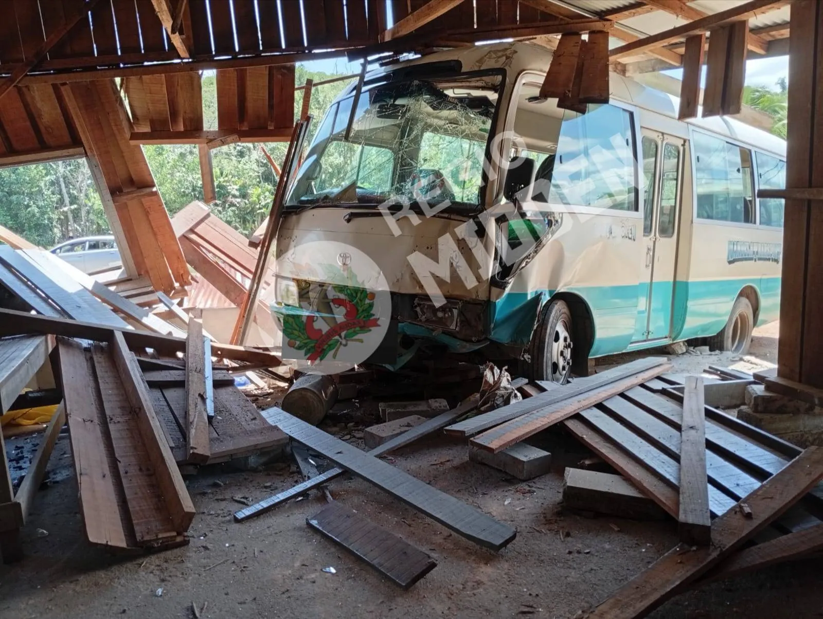 Een personenbus is vrijdagmiddag 24 oktober rond half eenĀ op de Gaama Agbagoweg, Brokopondo, ter hoogte van km 1 van de weg geraakt, op een erf beland en een woning ingereden.