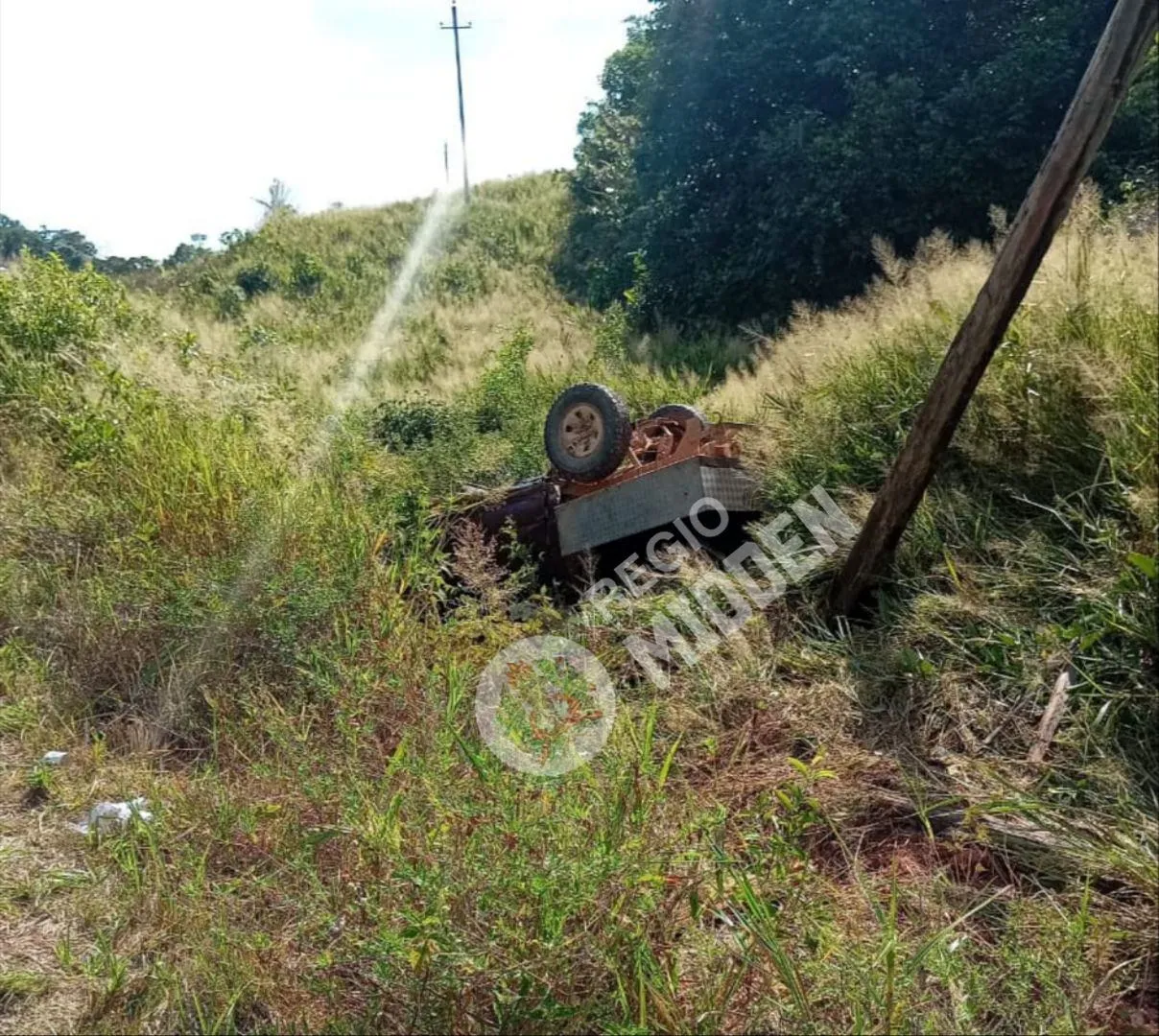 Bij controle ter plaatse bleek dat hij eerst een EBS-mast had geramd die in tweeën brak. Hierdoor was heel Brownsweg en omgeving verstoken van elektriciteit.