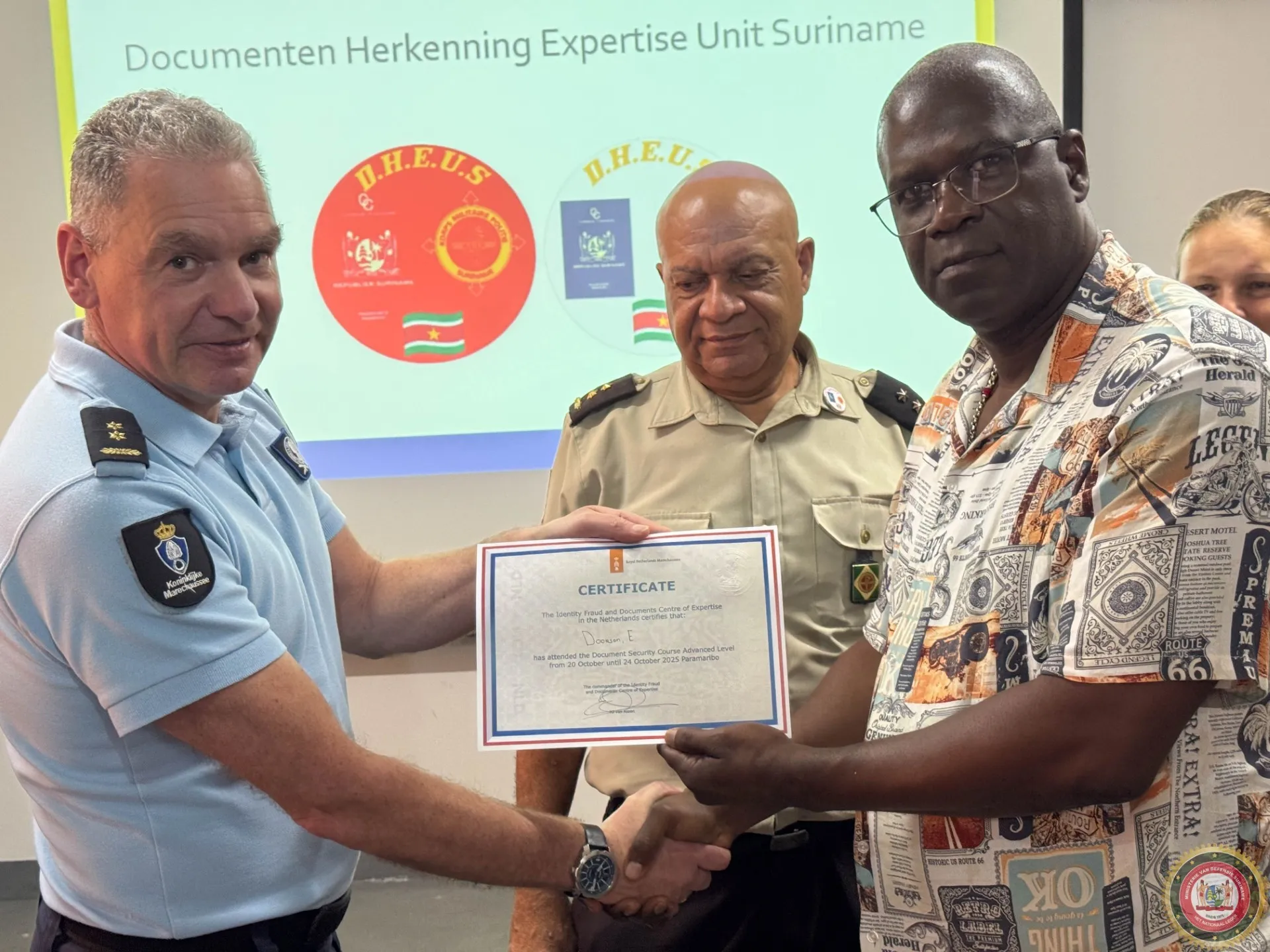 De cursus, verzorgd door het Expertise Centrum Identiteitsfraude en Documenten (ECID) van de Nederlandse Koninklijke Marechaussee in samenwerking met de Documenten Herkenning Expertise Unit Suriname (DHEUS) van het Korps Militaire Politie (KMP), vond plaats van 20 tot en met 24 oktober.