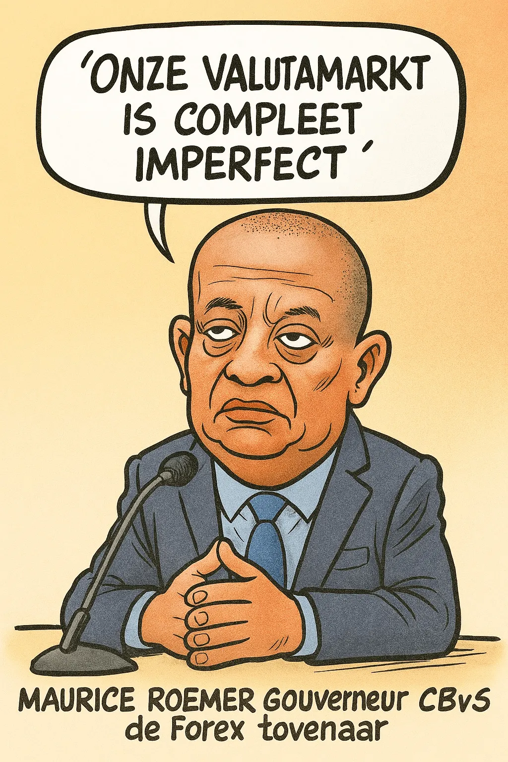 Wanneer governor Maurice Roemer van de Centrale Bank van Suriname zegt dat “de valutamarkt compleet imperfect is,” klinkt dat bijna ironisch. Want onder zijn leiding is precies dat gebeurd wat hij nu beklaagt. De koers wordt al jaren niet bepaald door gezonde vraag en aanbod, maar door geruchten, angst, en een handvol spelers die de markt beheersen.