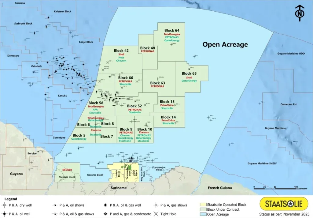“We zullen bedrijven blijven aantrekken om te investeren in ons bekken en de oprengsten gebruiken om Surinamer groener en duurzamer te maken, wat we Suriname 3.0 noemen”, aldus minister Patrick Brunings van Olie, Gas en Milieu.