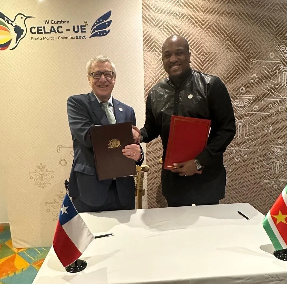 Suriname en Chili hebben hun samenwerking verder verdiept met de ondertekening van een Memorandum of Understanding tijdens de CELAC–EU-top in Santa Marta, Colombia.
