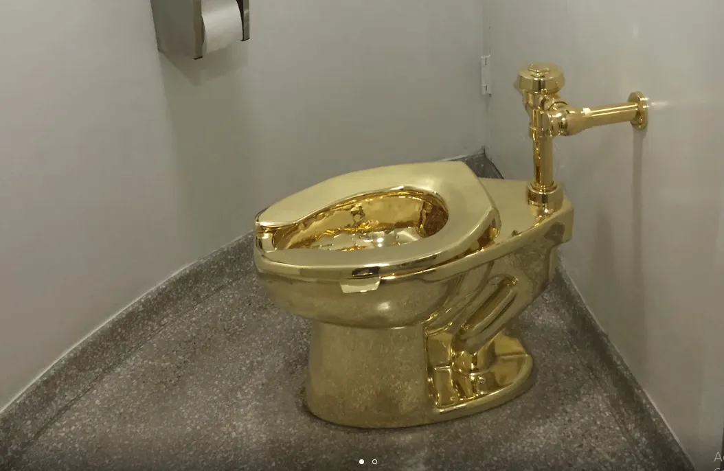 Gouden toilet van kunstenaar Maurizio Cattelan levert 12 miljoen dollar op bij veiling