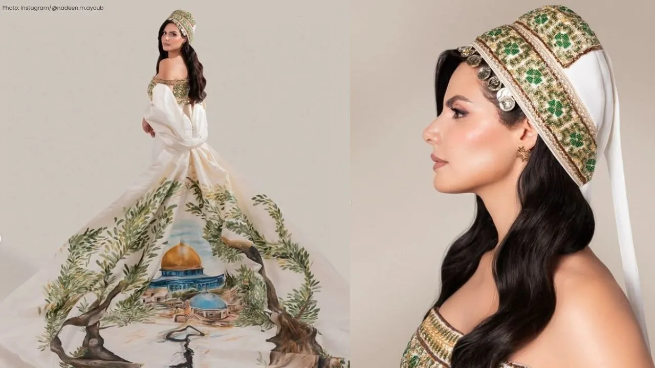 Nadeen Ayoub maakte geschiedenis tijdens de Miss Universe-verkiezing in Thailand donderdag 20 november, als de eerste Palestijnse deelneemster aan Miss Universe, met een ivoorkleurige jurk vol goudgroene tatreez-borduursels die de rijke traditie van Palestijnse vrouwen uitstraalt. Elke steek vertelt een verhaal van erfgoed en weerbaarheid.