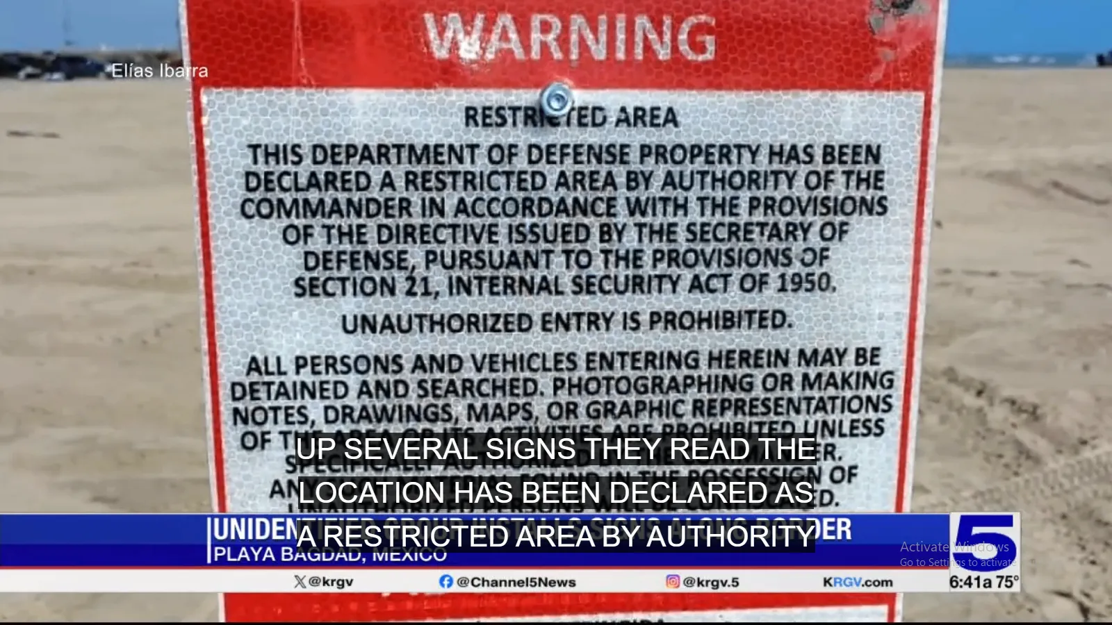 Maandag arriveerden mannen in een boot op een strand in het noordoosten van Mexico en plaatsten enkele borden om aan te geven dat het Amerikaanse ministerie van Defensie het gebied als verboden gebied beschouwde.