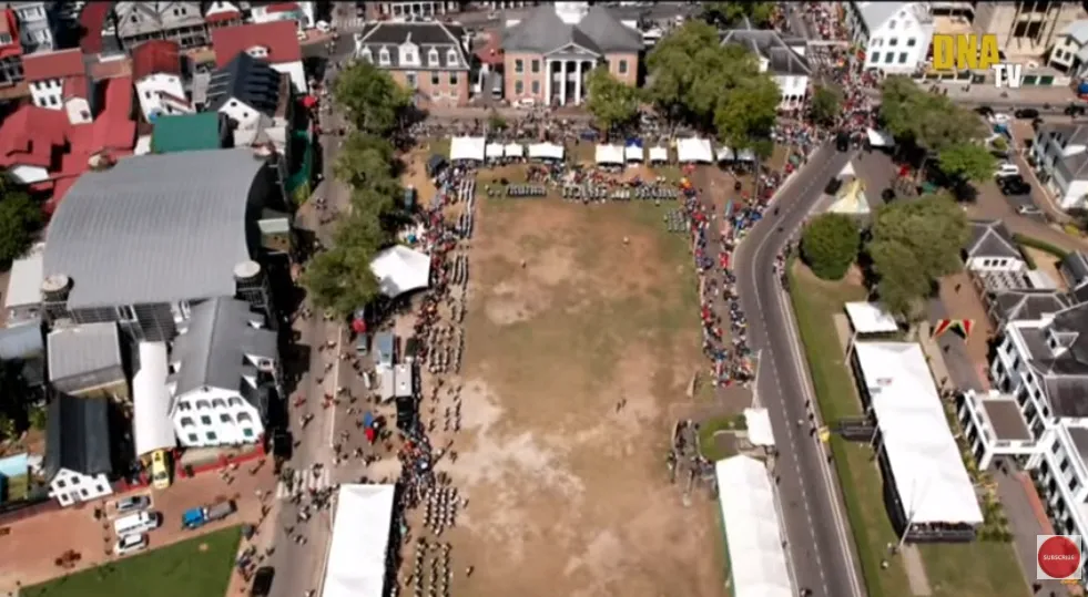 Met beelden vanuit de lucht werd diverse keren het plein aan de vele kijkers getoond. Maar, wat men te zien kreeg leek op geen enkele wijze op het Onafhankelijkheidsplein zoals dat plein zou moeten zijn: fris groen. Neen, wat de kijkers voorgeschoteld kregen was een grote zandbak, omringd door groene frisse bomen, dat gelukkig nog wel.