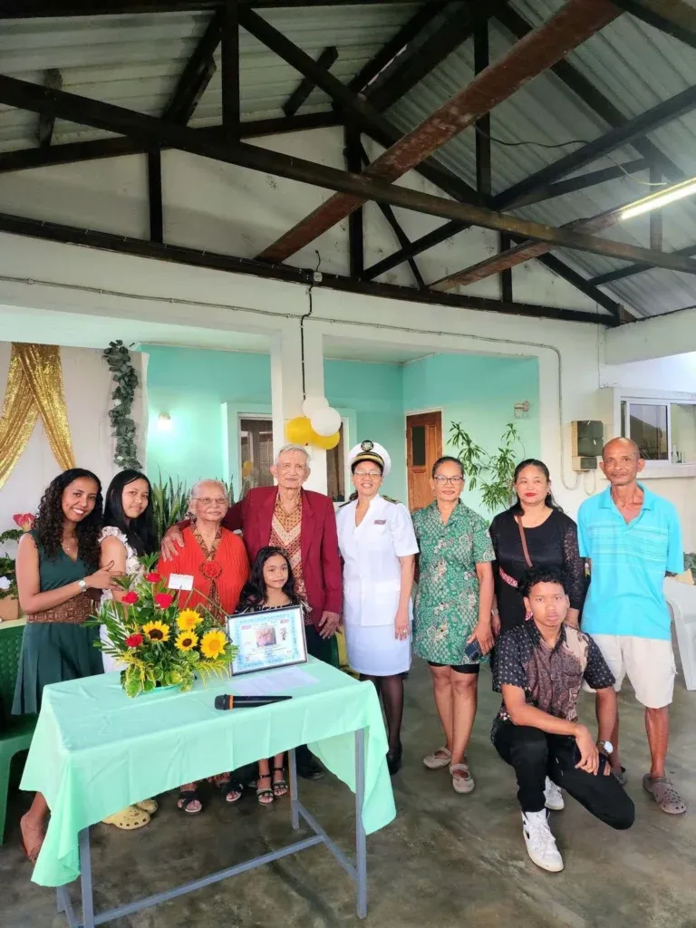 De districtscommissaris van Wanica Noord-West, drs. Glenda Kranenburg, bracht de felicitaties over namens de regering en overhandigde een bloemstuk, een fotolijst en de speciale gebruikelijke enveloppe met inhoud, zo berirhct het Burger Informatie Centrum van het district op Facebook.