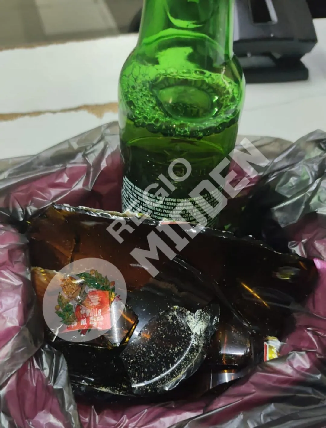 Daarna gooide hij een fles Heineken in haar richting en liep weg. Even later kwam hij terug met een lege Parbo-bierfles, die hij naar haar gooide. Y.M. raakte hierdoor gewond aan een arm en schakelde de politie in. Zij is doorverwezen naar een arts voor behandeling.
