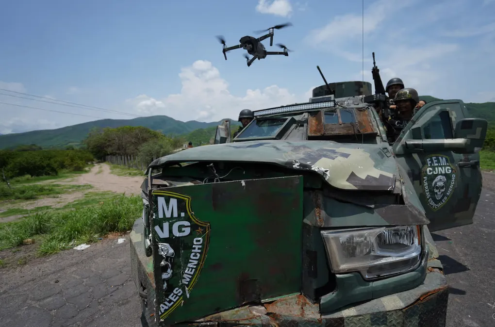 Beveiligingsexperts constateren een groter bereik in de wapen oorlog van kartels in Mexico door het gebruik van kamikaze-drones en signaalverstoorders tegen aanvallen van rivalen, aldus de Spaanse krant El Pais.
