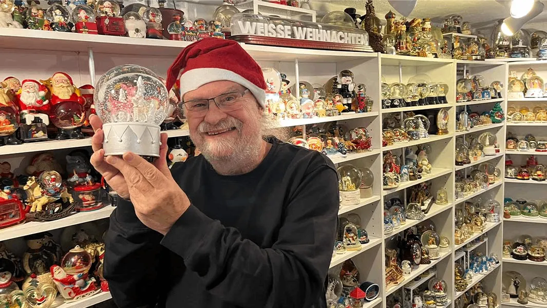 Een Duitse man die in 2002 een Guinness World Record behaalde met zijn verzameling van 6.100 sneeuwbollen, heeft onthuld dat zijn collectie inmiddels is uitgegroeid tot 11.000 stuks.