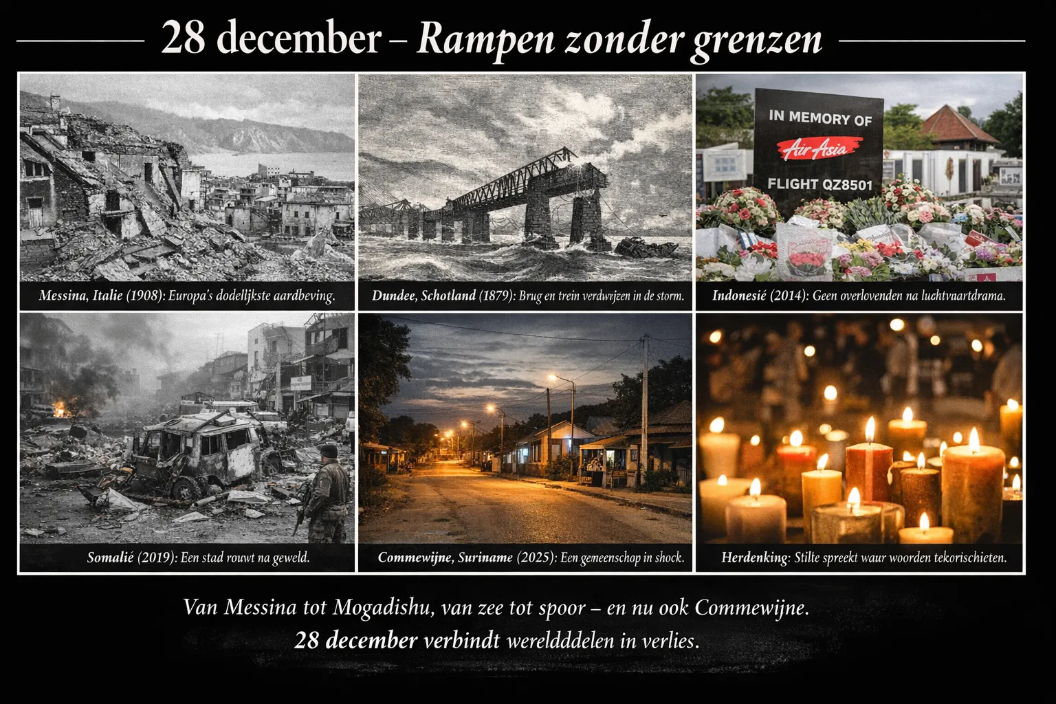 Rampen verbinden plaatsen die geografisch ver van elkaar liggen, maar emotioneel dichtbij komen. Vanaf Messina tot Mogadishu, en nu ook Commewijne, toont 28 december hoe kwetsbaar samenlevingen zijn. Niet de datum zelf is fataal, maar wat zij onthult: hoe dun de scheidslijn is tussen het alledaagse en onherstelbaar verlies.