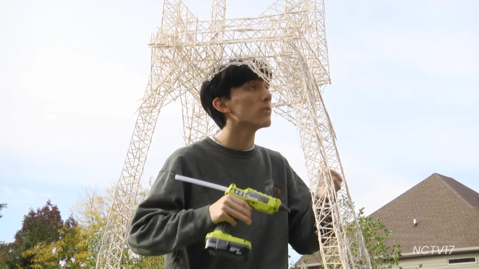 Een tiener in Illinois heeft een Guinness World Record verbroken door een 5,35 meter hoge replica van de Eiffeltoren te bouwen van ongeveer 20.000 tandenstokers.