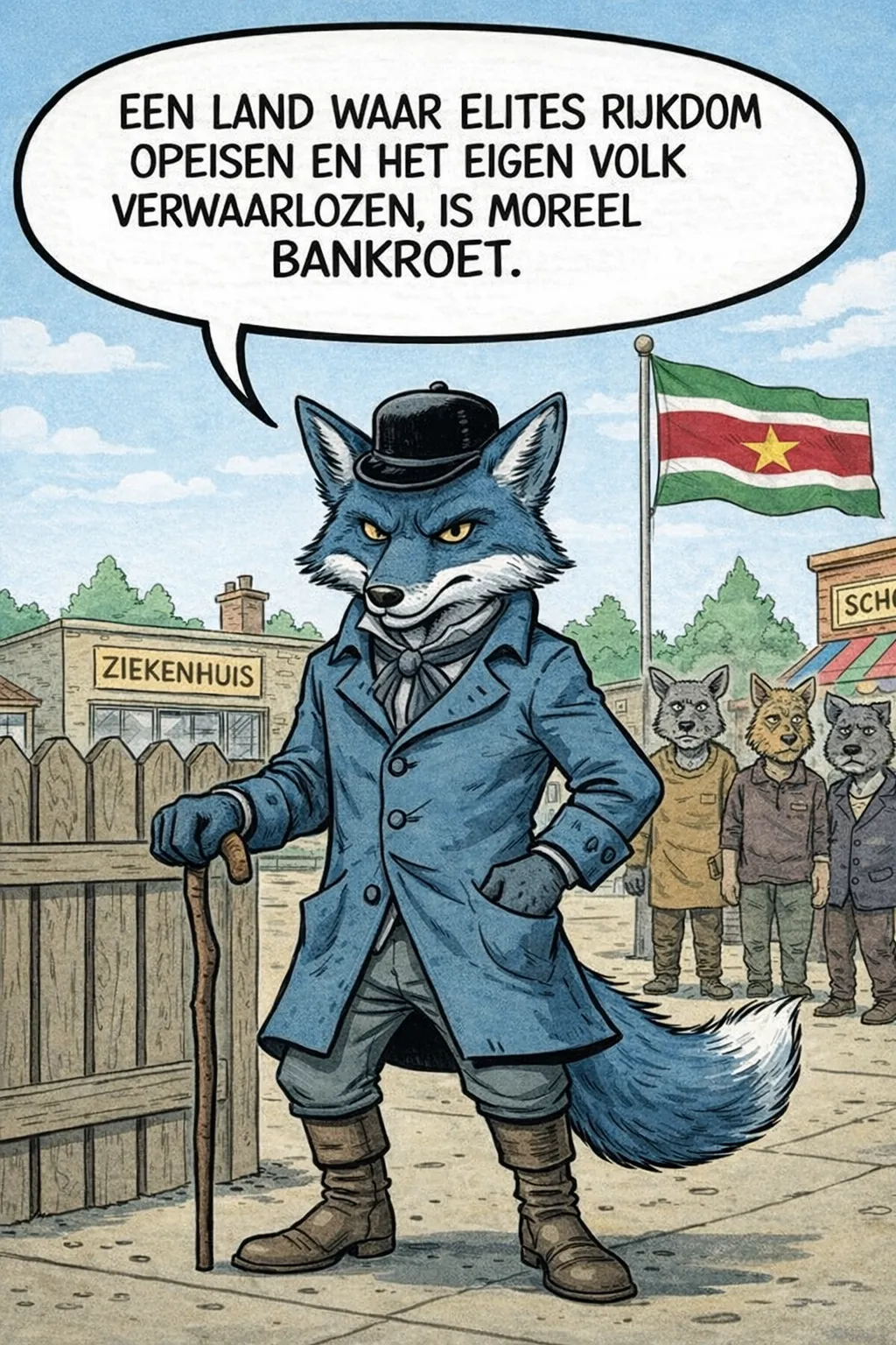 Een marktverkoper die USD 300 per maand verdient, staat tegenover bestuurders met salarissen en voorzieningen die vele malen hoger liggen, inclusief auto’s, brandstof, beveiliging en buitenlandse reizen. Satirisch gezegd: in Suriname is armoede een burgerplicht, terwijl comfort een regeringsrecht lijkt.