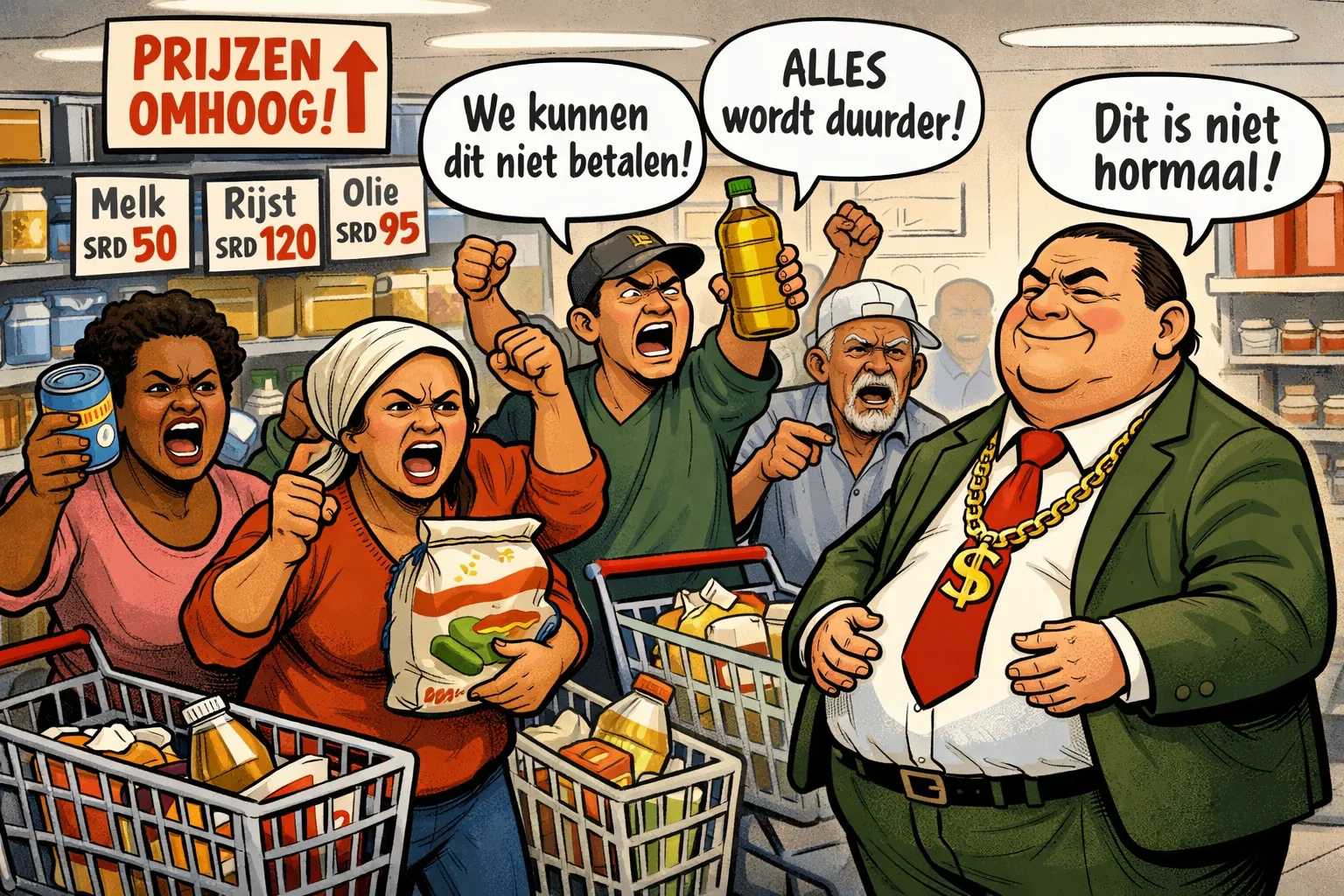 2025 is voorbij, maar het geklaag over winkelprijzen klinkt als een liedje zonder einde. In Suriname zijn de beste controleurs geen ambtenaren met formulieren, maar vrouwen met boodschappentassen en scherpe ogen. Zij merken het meteen: dezelfde rijst, dezelfde olie, dezelfde zeep – maar elke maand een paar centen duurder. Niet schokkend. Juist slim. Sluw.