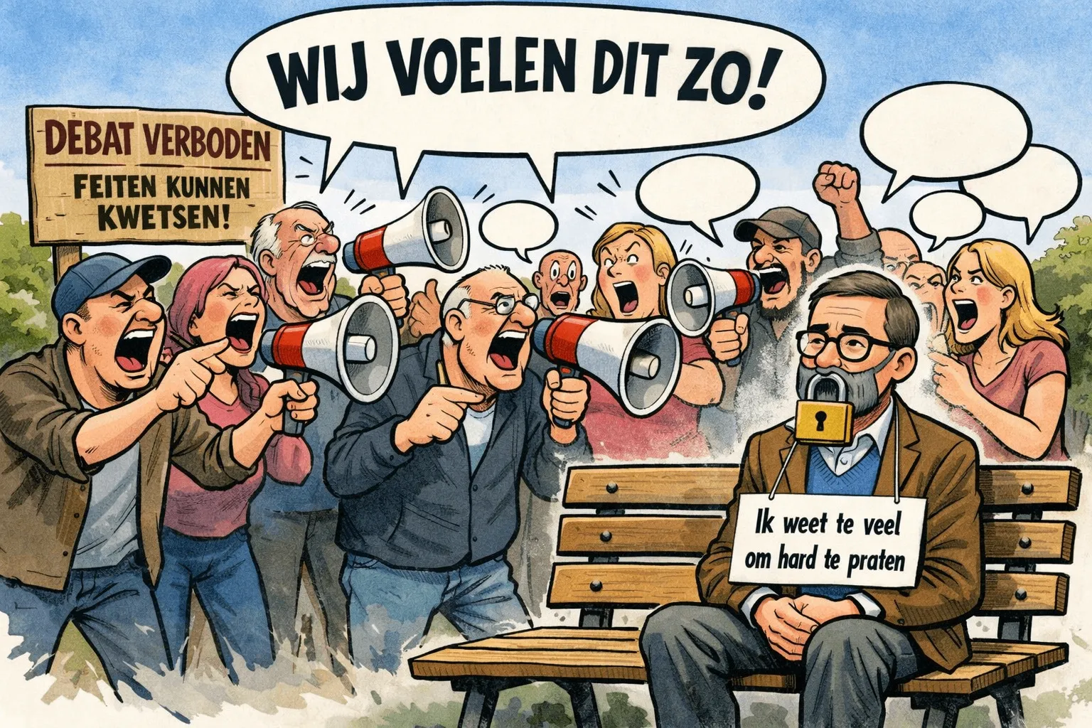 Dus zwijgt de intelligentie. Uit beleefdheid. Uit vermoeidheid. En soms uit zelfbescherming. Want in een wereld waar gevoelens zwaarder wegen dan feiten, is gelijk hebben geen overwinning meer.