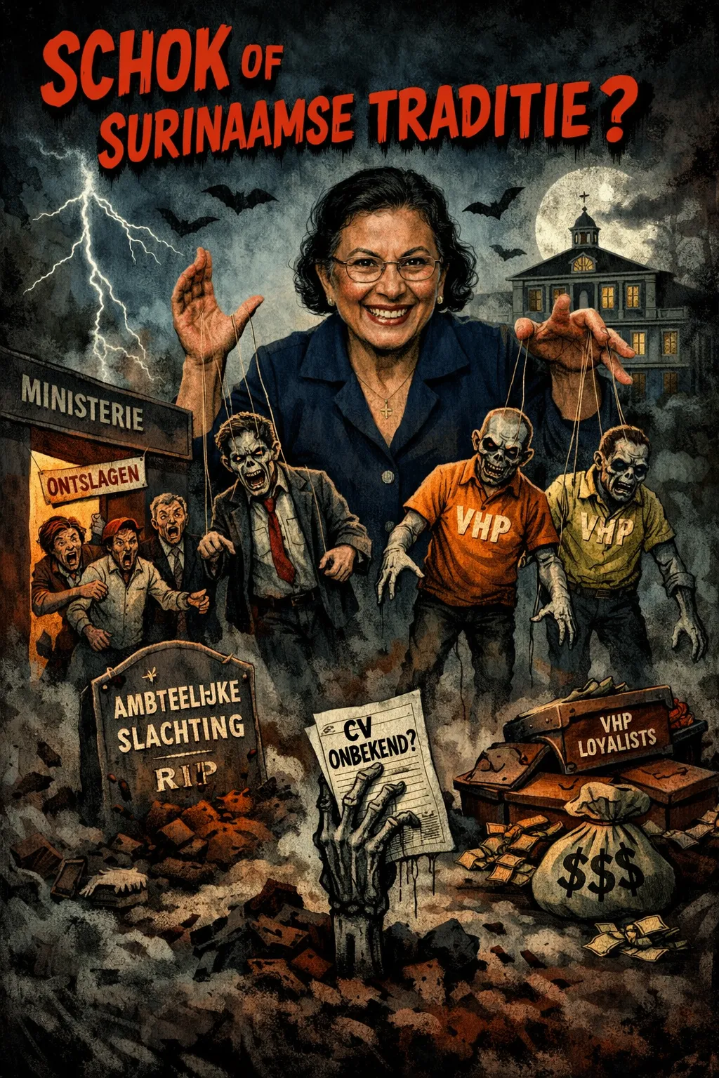 Elke nieuwe regering in Suriname brengt hetzelfde ritueel met zich mee: stoelen schuiven, namen verdwijnen, nieuwe gezichten verschijnen. Officieel heet het beleidsvernieuwing, in de volksmond gewoon wisseltruc. Dat dit nu ook onder president Simons gebeurt, zou dus geen schok moeten zijn. Toch kijkt een deel van de samenleving alsof de bliksem net is ingeslagen.