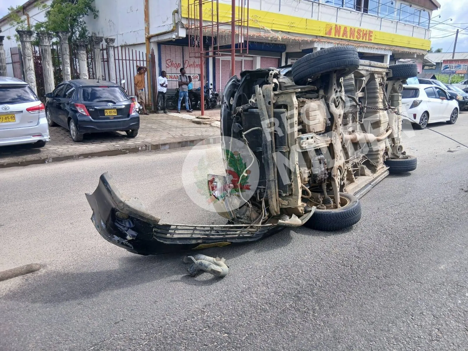 Bij een aanrijding tussen twee auto’s is dinsdag 6 januari op de Indira Gandhiweg een Noah-busje over de kop geslagen.