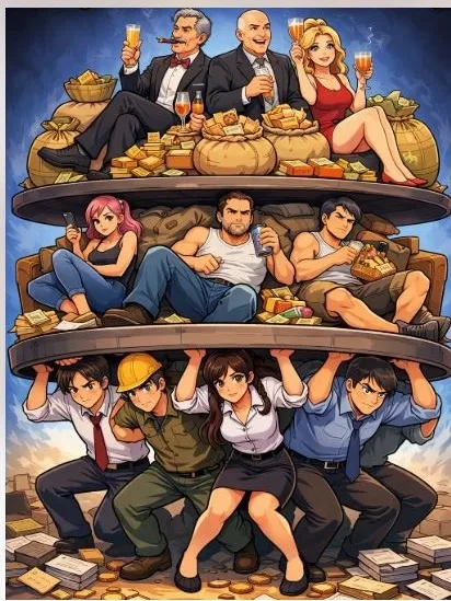 “De rijken worden rijker, de luien leven gratis en de middenklasse betaalt alles.” Deze zin vat in één klap een realiteit samen die ook in Suriname steeds zichtbaarder wordt. De bovenlaag consolideert vermogen via politieke toegang, staatscontracten en fiscale uitzonderingen, terwijl risico’s structureel worden afgewenteld op dezelfde groep werkenden en ondernemers die geen vangnet hebben en geen privileges genieten.