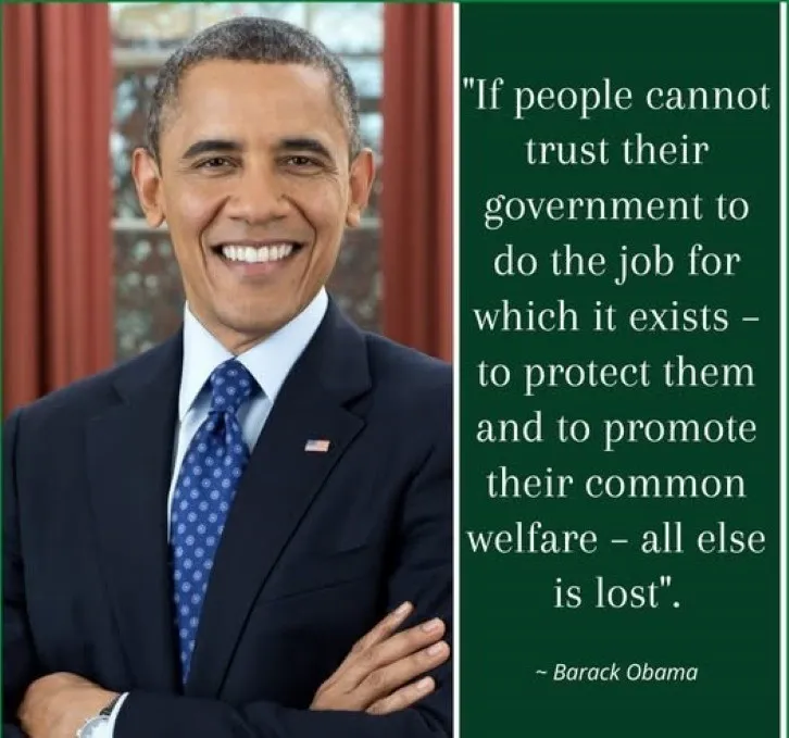“If the people cannot trust their own government to do the job for which it exists, to protect them and to promote their common welfare, all else is lost” (Barack Obama)