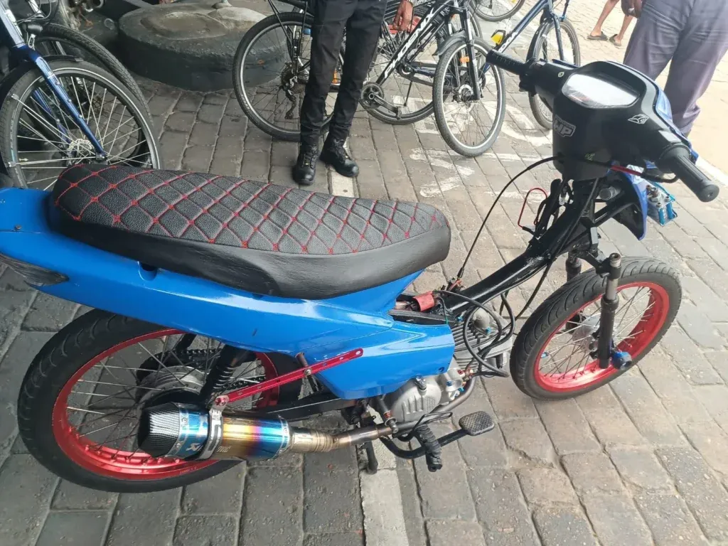 Bij controle bleek hij zonder bescheiden te rijden en werd de bromfiets ter herkeuring in beslag genomen. Tijdens de herkeuring door een lid van de keuringscommissie van het Korps Politie Suriname bleek de motor een capaciteit van 212 cc te hebben.