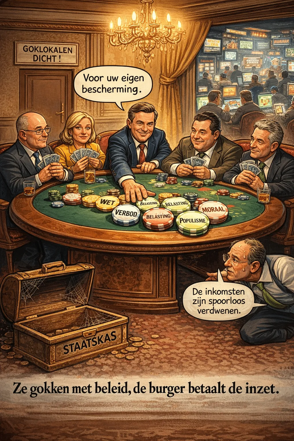 De overheid heeft besloten hard op te treden tegen gokken. Niet tegen het gokken zelf, maar tegen alles wat zichtbaar is. Goklokalen gaan dicht, vergunningen worden ingeperkt en ondernemers die netjes belasting betalen mogen hun stoelen opstapelen. Het probleem is volgens de initiatiefnemers daarmee opgelost. De digitale wereld is blijkbaar onder de indruk.
