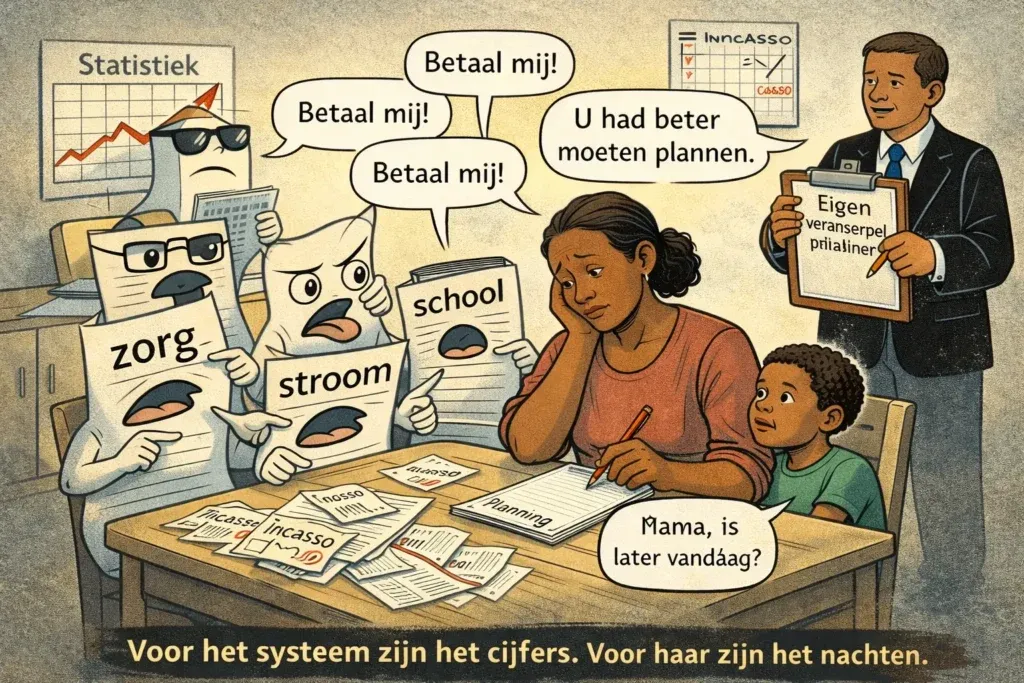 Statistieken zijn keurig opgevoed. Ze luisteren, knikken en zwijgen. Mensen niet. Wanneer een Surinaamse moeder over schulden praat, hoor je geen percentages, maar schaamte die zorgvuldig wordt verpakt in beleefde zinnen. Ze zegt niet dat ze tekortkomt; ze zegt dat ze “even moet schuiven”. Alsof armoede een meubelstuk is. Haar schulden begonnen niet bij luxe. […]