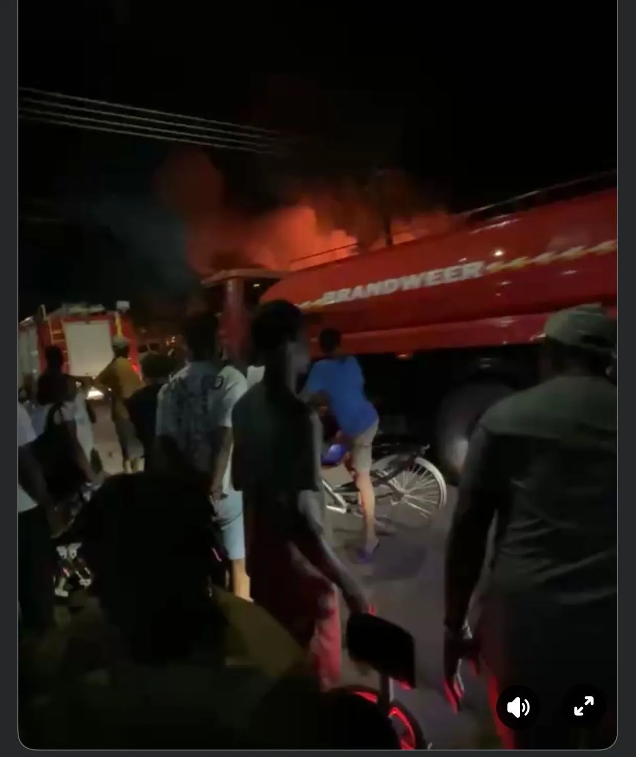 De brandweer was met meerdere wagens uitgerukt. maar kon niets meer doen dan nablussen en trachten te voorkomen dat het vuur zou overslaan naar andere panden.