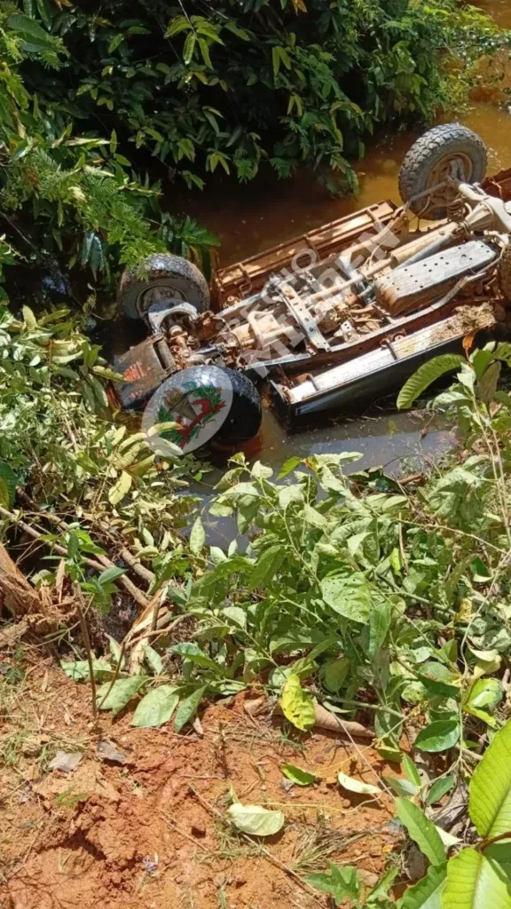 In een kreek langs de weg naar Pusugrunu is zondagochtend 8 februari rond elf uur een zwaar beschadigde terreinwagen aangetroffen.