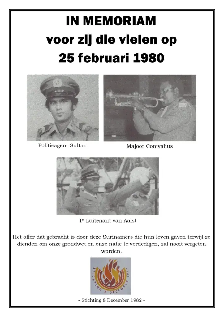 Niet alleen politici, maar ook militairen en politiemannen die hun eed aan de grondwet trouw bleven, betaalden met hun leven. Majoor Comvalius, eerste luitenant Van Aalst en politieagent Sultan werden op 25 februari doodgeschoten tijdens de uitoefening van hun taak. Hun namen staan symbool voor de offers die gebracht zijn om de democratie te verdedigen.