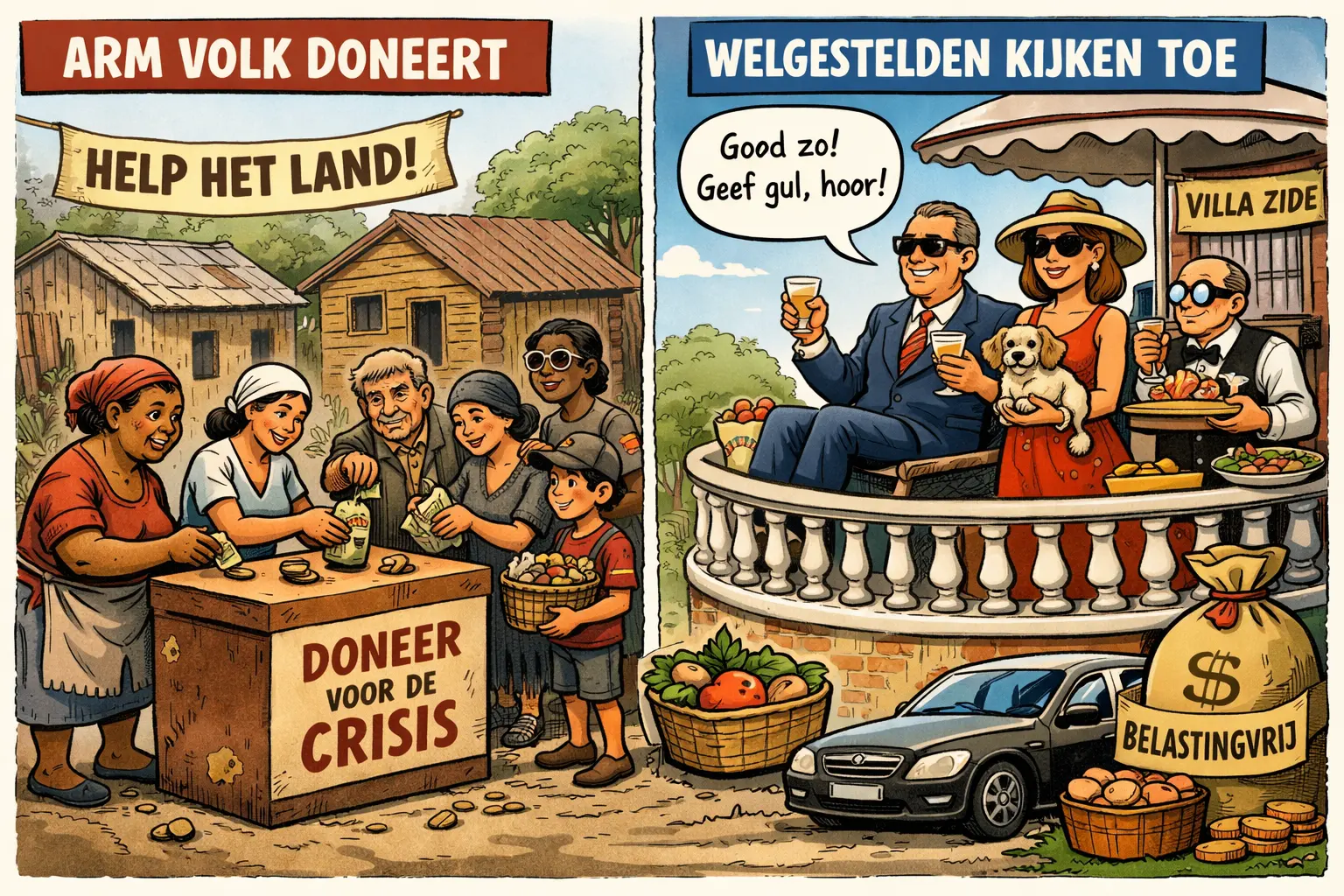 Het is een vreemde vorm van solidariteit: van beneden naar boven. De marktverkoper wordt aangesproken op zijn plicht, de verpleegkundige op haar hart, de gepensioneerde op zijn laatste spaargeld. Maar waar zijn de benefietavonden in villawijken? Waar zijn de openbare donaties van mensen die het kunnen missen? Die zie je zelden, en als ze er zijn, dan graag met camera, applaus en aftrekpost.