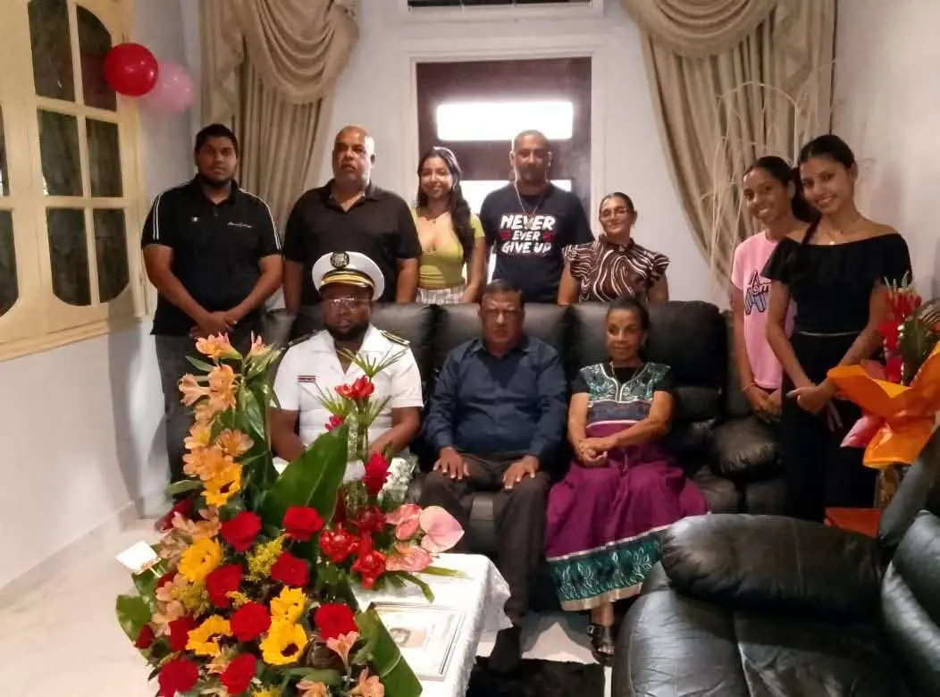 Het echtpaar Baldew-Ramdjanamsingh vierde op 25 februari hun 50-jarig huwelijksjubileum in Commewijne. Districtscommissaris Rajiv Ramsahai bracht de hartelijke gelukwensen over namens de regering en overhandigde een bloemstuk, een ingelijste foto en de gebruikelijke gesloten enveloppe met inhoud.