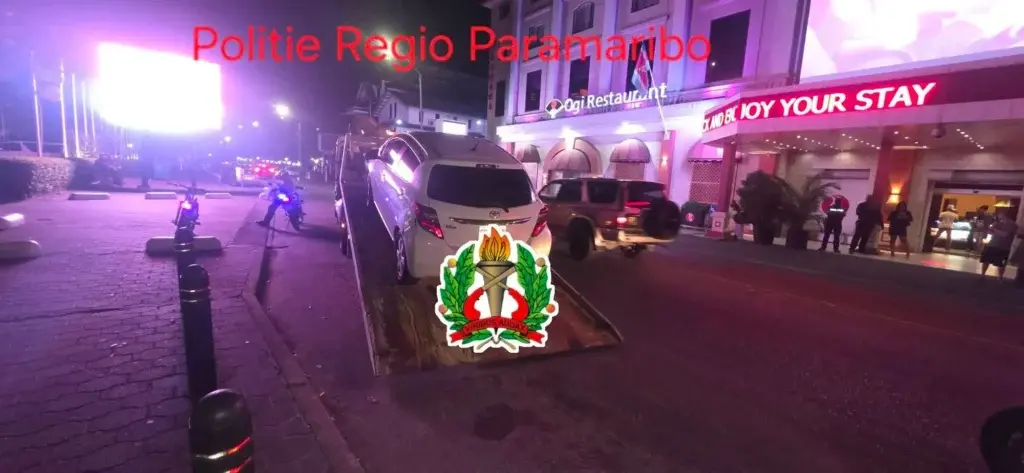 Politie treedt op tegen verkeerd geparkeerde auto’s in uitgaanscentrum Paramaribo