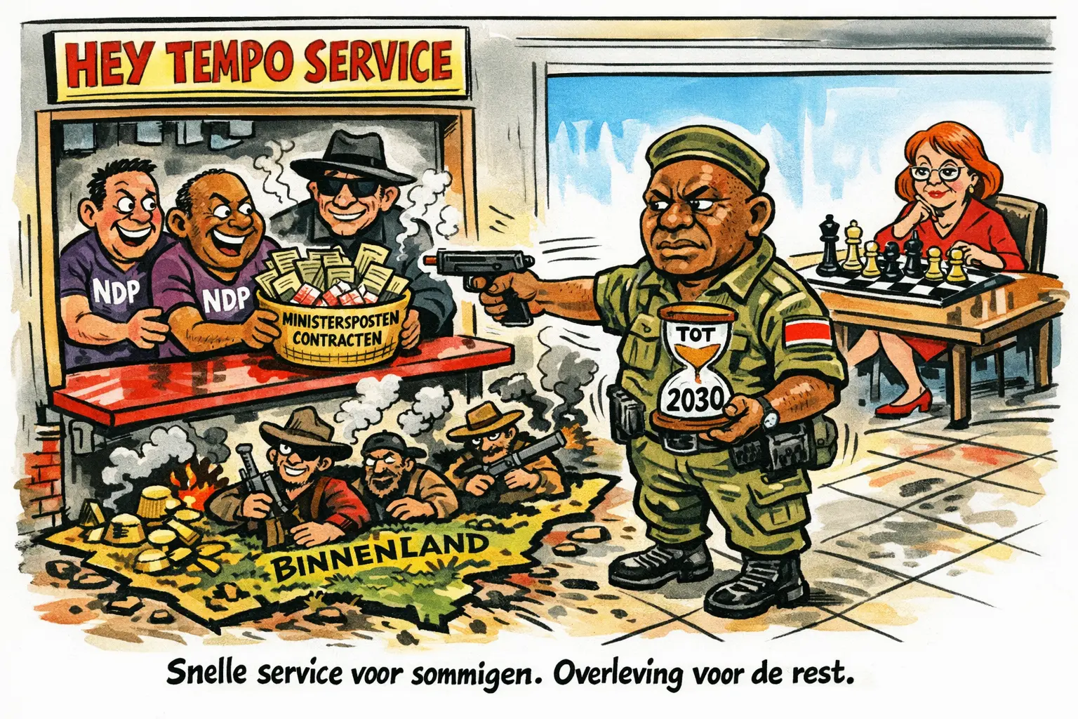 De NDP krijgt volgens hem snelle service. Hey tempo. Alsof de staat een fastfoodketen is. Bestelling geplaatst. Meteen geleverd. Voor anderen geldt wachttijd. Of geen levering. Of verdwalen in dossiers zonder einde.